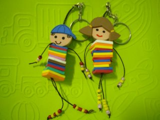Poner las perlas y se pasan a través de agujeros en los cuadrados de EVA, con la ayuda de una aguja en el otro extremo poner más cuentas y ate un nudo pequeño.